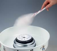 Tystgående maskin som gör spunnet socker snabbt på bara några minuter.Hur enkelt som helst. Rulla bara struten runt,runt tills du fått tillräckligt på struten. Klart!